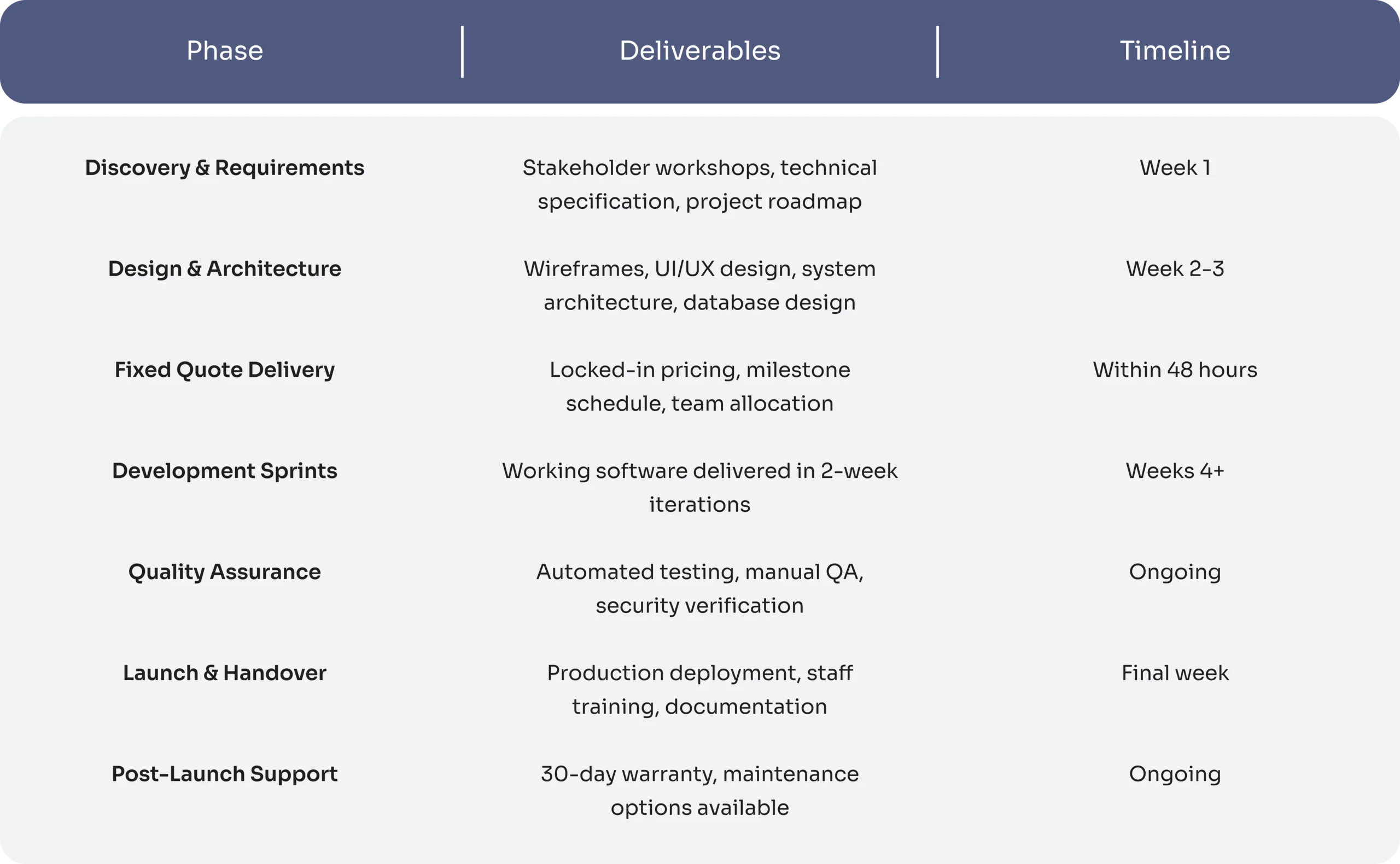 Unlike hourly billing or vague project quotes, our Fixed-Scope model provides:
